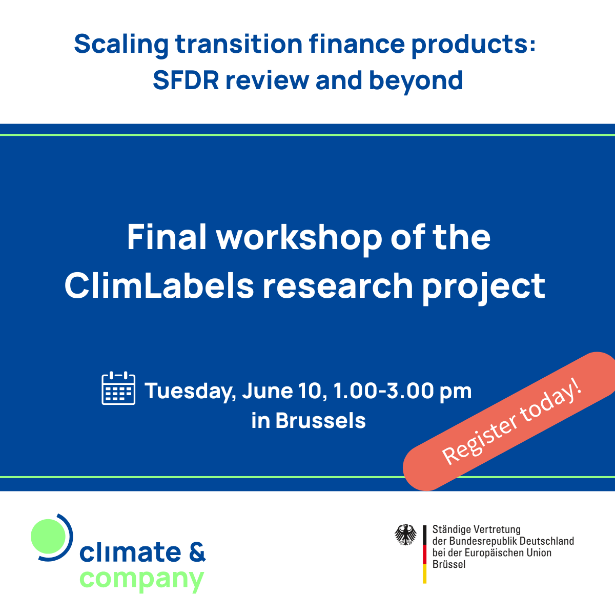 - June 2025: Final Workshop in Brussels “Scaling transition finance products: SFDR review and beyond” (see link)